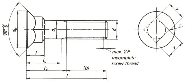 - Форма болтаЗ потаємною головкою та квадратним підголовком