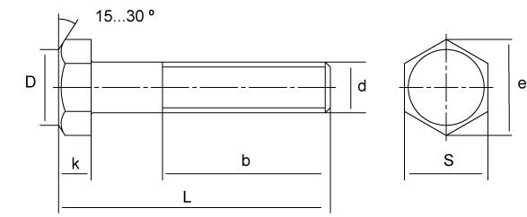 - DIN 933 – повне різьблення.
