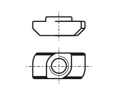 Т-подібна гайка дозволяє прикріплювати до профілю різні додаткові деталі або конструкції. Так як поворотний елемент, він може встановлюватися як з торцевої сторони, так і безпосередньо в паз по всій довжині профілю. Рифлене покриття на робочій стороні гайки, призначене для зачеплення під стінкою паза шини, а її форма створює герметичні та надійні з'єднання.