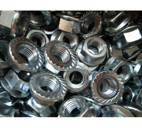 Виготовляється гайка М10 DIN 6923 з вуглецевої високоміцної сталі та для експлуатування у вологому середовищі, покривається цинком.