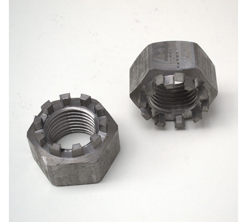 Гайка корончата М39 ГОСТ 5918-73, виконана з класом міцності 8.0 є високоміцним шестигранним кріпленням і використовується для запобігання самовідгвинчування різьбових з'єднань, схильних до вібрацій або інших механічних впливів.