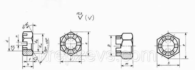 Основні характеристики гайки ГОСТ 5919-73 (DIN 937) (мм):