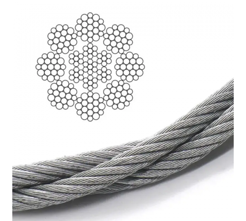Канат (трос) стальной EN 12385-5, 8x19W-IWRC 10 мм грузочеловеческий (цена указана за 1 метр)