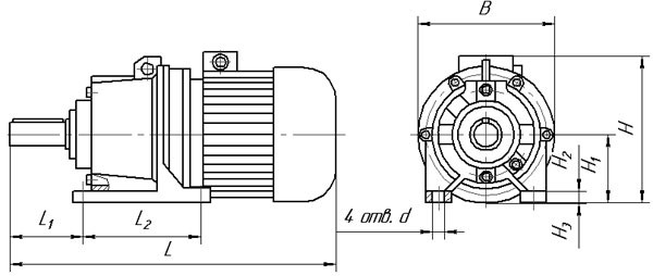 Габаритні і приєднувальні розміри мотор-редукторів 3МП (виконання - на лапах)