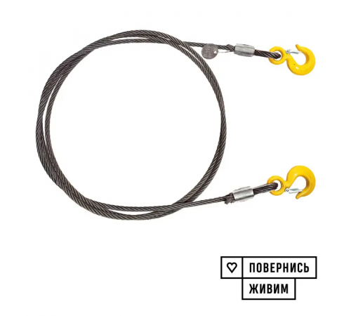 Буксирувальний трос із сталевого каната KrepZevs 15 т, 7 м (гак-гак)