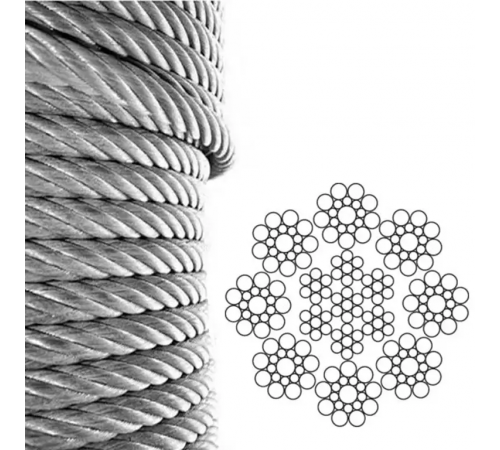 Канат (трос) сталевий EN 12358-5, 8х19S-IWRC 6.5 мм вантажолюдський (ціна вказана за 1 метр)