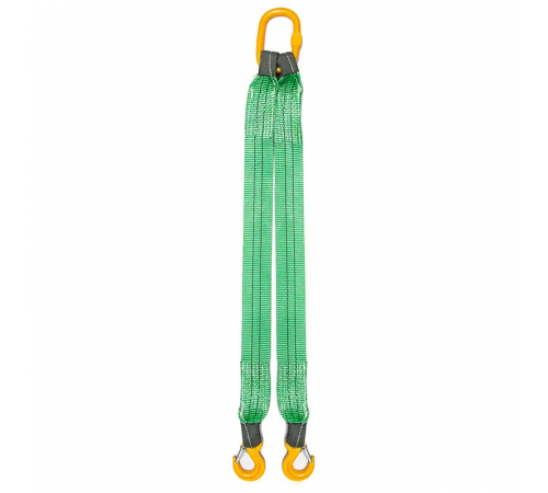 Цей строп має довжину 3.5 метра, що дозволяє зручно і безпечно виконувати підйомні роботи. Він оснащений двома гілками, які забезпечують рівномірне розподілення навантаження під час підйому. Кожна гілка має міцні карабіни на кінцях для легкої фіксації на вантажі та підйому.